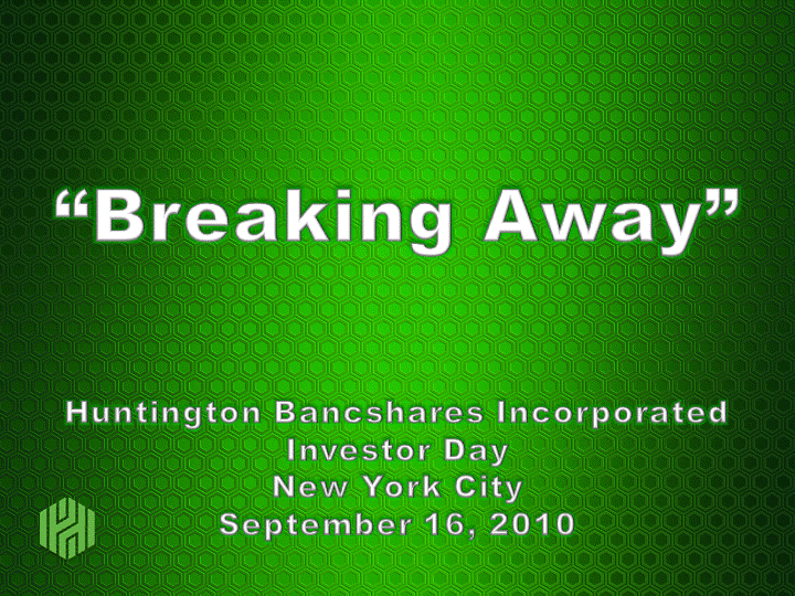 | "Breaking Away" Huntington Bancshares IncorporatedInvestor DayNew York CitySeptember 16, 2010 |