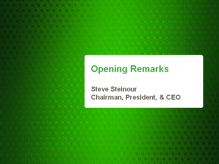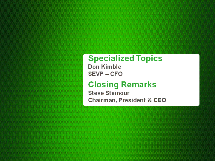 | Specialized TopicsDon KimbleSEVP - CFOClosing RemarksSteve SteinourChairman, President & CEO |