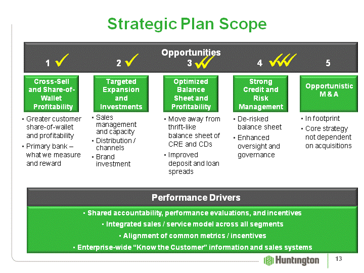 | OptimizeCurrentFranchiseCross-sell / share-of-walletProfitability / pricingInvest in capabilities Staged Strategic Plan Implementation LaytheFoundationCapital and liquidityOrganizational changes Build management depthCredit and risk management Invest in theCoreBuild out sales forces, channels, and productsLeverage the "successes" 2011 Selective M&A - as opportunities arise 2010 2009 12 |