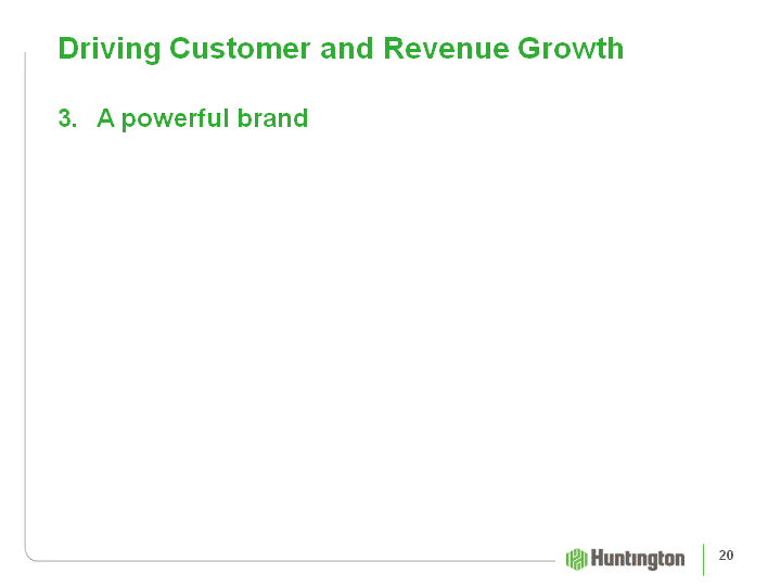 | Our "Fair Play" Banking Philosophy Deliver a Category of One customer experience that drives higher relative customer satisfaction and acquisitionNo nuisance fees... our version of Southwest Airline's successful "The Bags Fly Free"(r) market positioningSimple / compelling productsMost convenient bank in OhioBest customer serviceRelationship driven 19 |