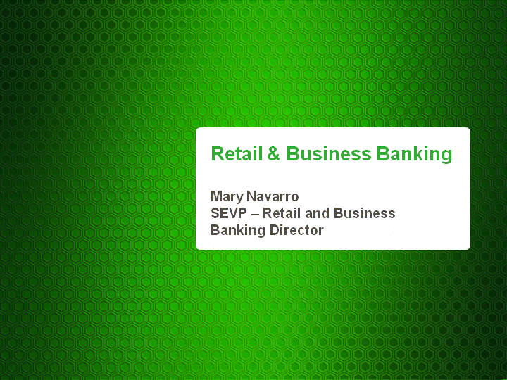 | Retail & Business Banking Mary Navarro SEVP - Retail and Business Banking Director |
