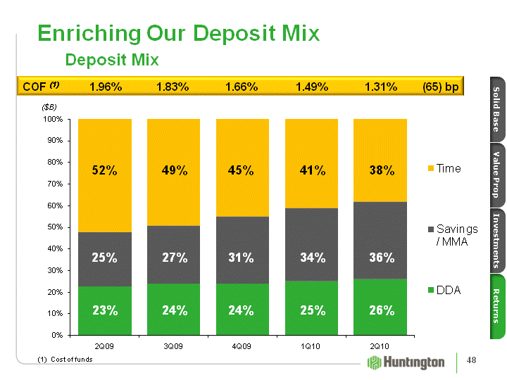 | (CHART) Enriching Our Deposit Mix Deposit Mix ($B) 25% 36% 24% 25% 26% 34% 31% 27% 23% 24% 52% 49% 45% 41% 38% COF (1) 1.96% 1.83% 1.66% 1.49% 1.31% (65) bp Solid Base Investments Returns Value Prop (1) Cost of funds 48 |