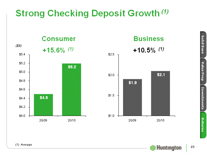 | (CHART) (CHART) Strong Checking Deposit Growth (1) Consumer +15.6% (1) +10.5% (1) Business (1) Average ($B) Solid Base Investments Returns Value Prop 49 |