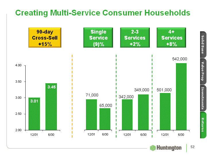 | (CHART) (CHART) Growing Net Checking Households (HHs) Consumer HHs +6.7% (1) 5.4% (1) Business HHs (1) Annualized Solid Base Investments Returns Value Prop 51 |