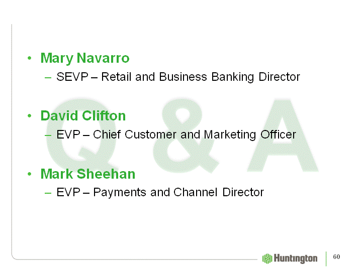 | Q & A Mary NavarroSEVP - Retail and Business Banking DirectorDavid Clifton EVP - Chief Customer and Marketing OfficerMark Sheehan EVP - Payments and Channel Director 60 |