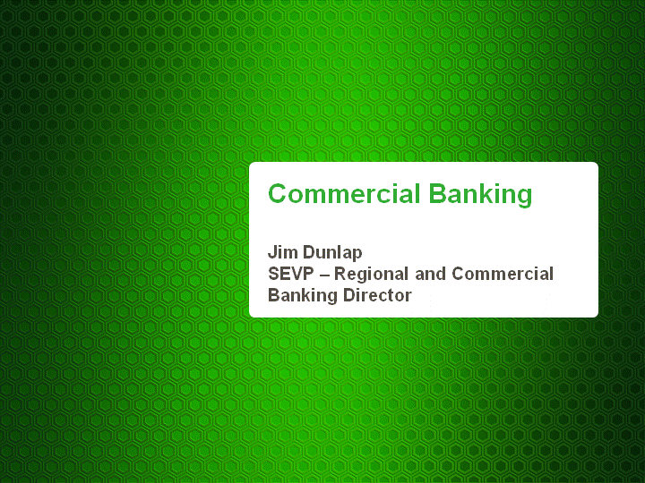 | Commercial Banking Jim Dunlap SEVP - Regional and Commercial Banking Director |