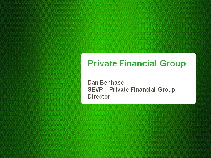 | Private Financial Group Dan Benhase SEVP - Private Financial Group Director |