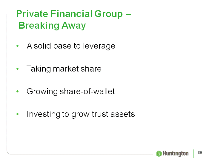 | Private Financial Group - Breaking Away A solid base to leverageTaking market shareGrowing share-of-walletInvesting to grow trust assets 80 |