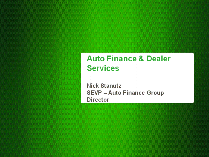 | Auto Finance & Dealer Services Nick Stanutz SEVP - Auto Finance Group Director |
