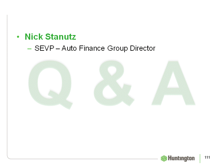 | Q & A Nick StanutzSEVP - Auto Finance Group Director 111 |