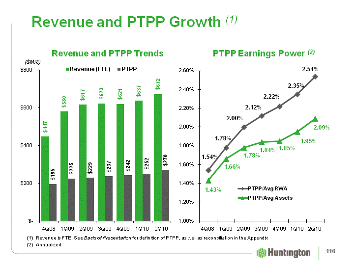 | (CHART) Revenue and PTPP Growth (1) ($MM) (CHART) (1) Revenue is FTE; See Basis of Presentation for definition of PTPP, as well as reconciliation in the Appendix(2) Annualized PTPP Earnings Power (2) Revenue and PTPP Trends 116 |