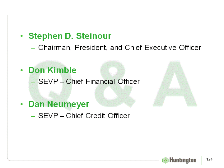 | Q & A Stephen D. SteinourChairman, President, and Chief Executive OfficerDon KimbleSEVP - Chief Financial OfficerDan NeumeyerSEVP - Chief Credit Officer 124 |
