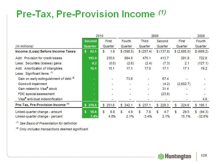 | Pre-Tax, Pre-Provision Income (1) 128 |