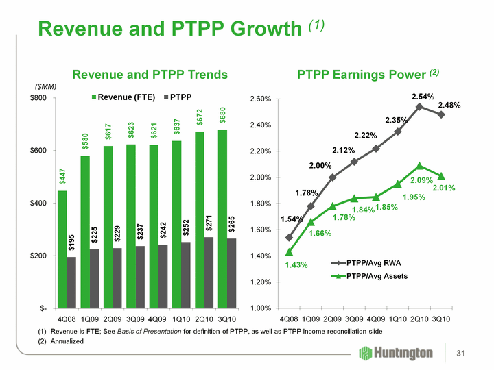 | (CHART) Revenue and PTPP Growth (1) 31 ($MM) (CHART) (1) Revenue is FTE; See Basis of Presentation for definition of PTPP, as well as PTPP Income reconciliation slide(2) Annualized PTPP Earnings Power (2) Revenue and PTPP Trends |