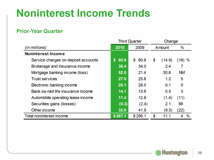 | Noninterest Income Trends 39 Prior-Year Quarter |