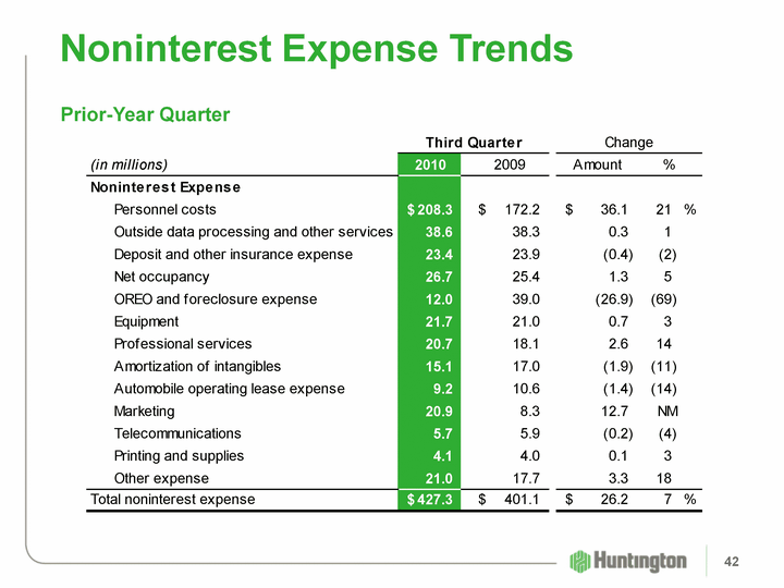 | Noninterest Expense Trends 42 Prior-Year Quarter |