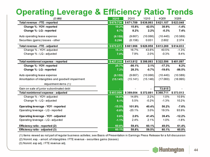 | (CHART) Efficiency Ratio 45 (1) Reported revenue and expenses adjusted for automobile operating lease expense and other items affecting comparability including merger costs. See Operating Leverage & Efficiency Ratio Trend slide for a reconciliation between GAAP and adjusted revenue and expenses. (1) |