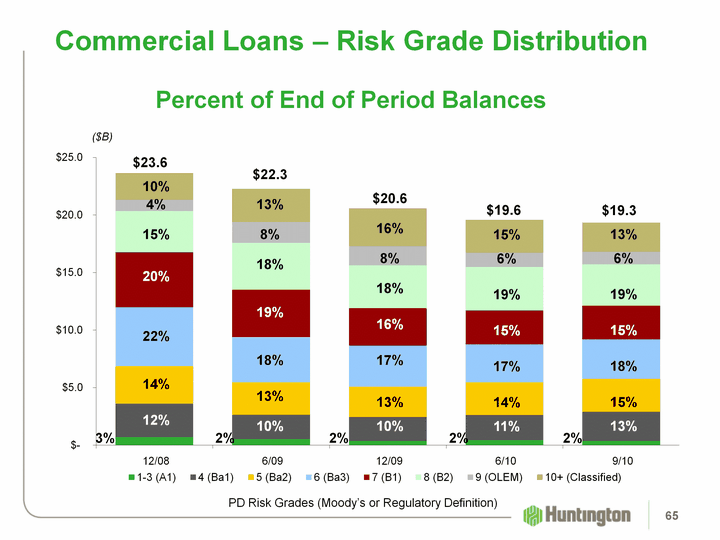 | (CHART) Commercial Loans - Risk Grade Distribution 65 PD Risk Grades (Moody's or Regulatory Definition) Percent of End of Period Balances ($B) $23.6 $22.3 $20.6 $19.6 10% 13% 16% 4% 8% 8% 15% 18% 18% 16% 19% 20% 17% 18% 22% 13% 13% 14% 10% 10% 12% 2% 2% 2% 3% 13% 6% 19% 15% 18% 15% 13% 2% $19.3 15% 6% 19% 15% 17% 14% 11% |