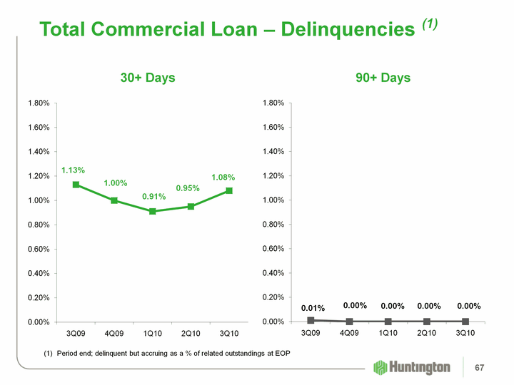 | Total Commercial Loan - Delinquencies (1) 67 (CHART) (CHART) (1) Period end; delinquent but accruing as a % of related outstandings at EOP 90+ Days 30+ Days |
