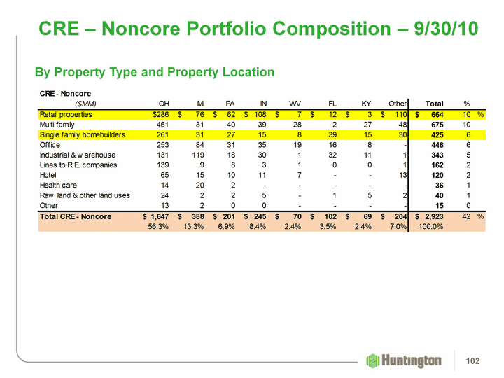 | CRE - Noncore Portfolio Composition - 9/30/10 102 By Property Type and Property Location |