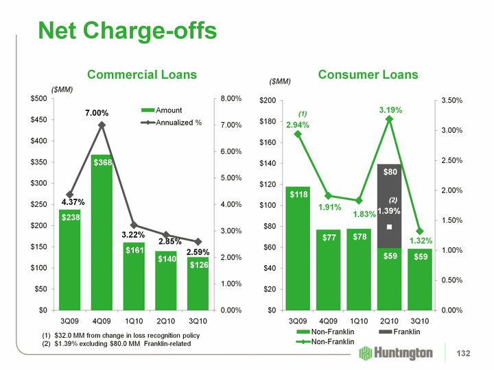 | (CHART) Net Charge-offs 132 ($MM) ($MM) (1) $32.0 MM from change in loss recognition policy$1.39% excluding $80.0 MM Franklin-related Consumer Loans Commercial Loans (2) (CHART) (2) |
