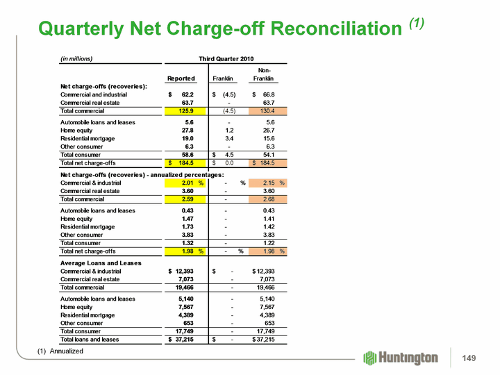 | Quarterly Net Charge-off Reconciliation (1) 149 (1) Annualized |