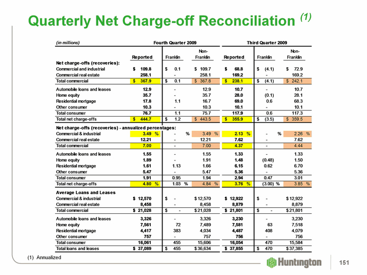 | Quarterly Net Charge-off Reconciliation (1) 151 (1) Annualized |