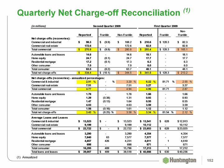 | Quarterly Net Charge-off Reconciliation (1) 152 (1) Annualized |