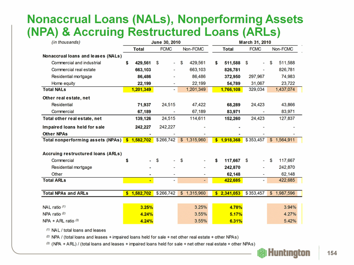 | Nonaccrual Loans (NALs), Nonperforming Assets (NPA) & Accruing Restructured Loans (ARLs) 154 |