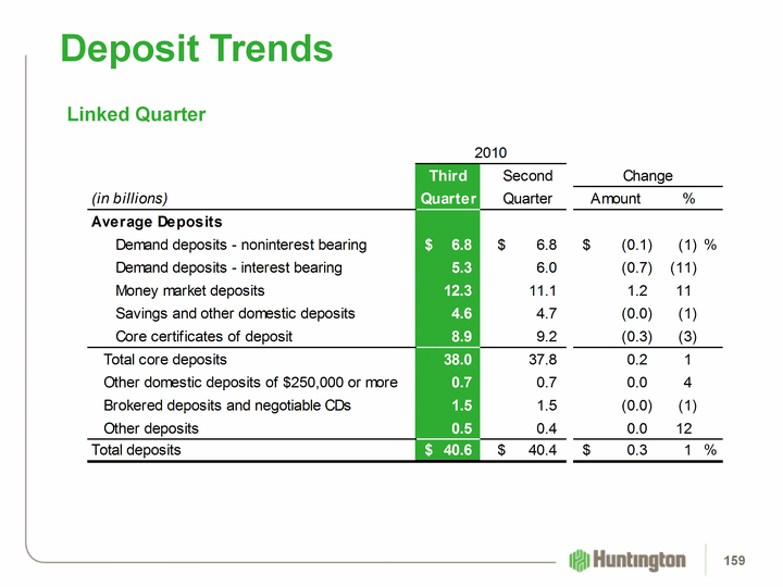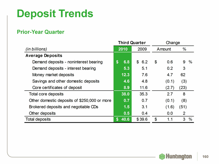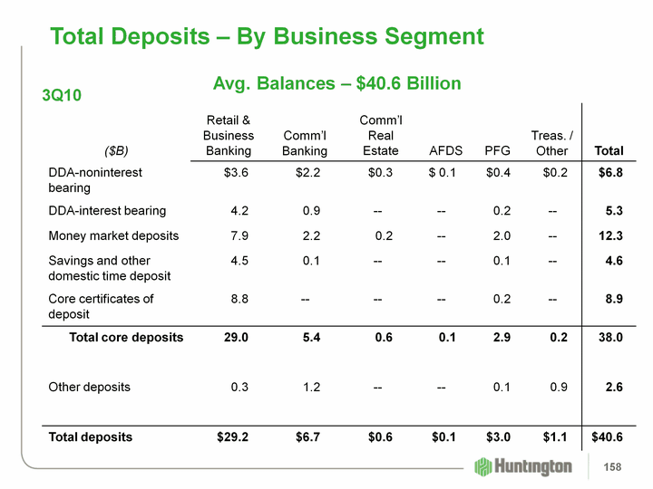 | Total Deposits - By Business Segment 158 158 Avg. Balances - $40.6 Billion 3Q10 |