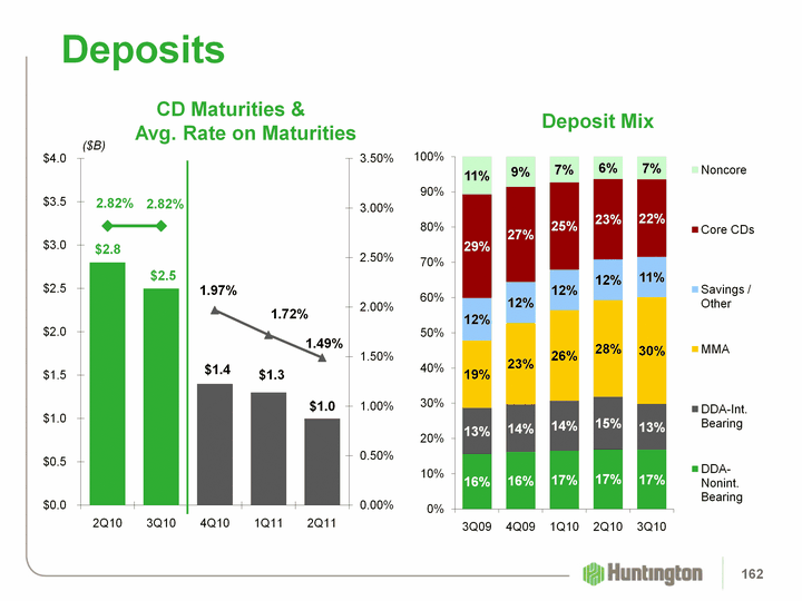 | (CHART) (CHART) Deposits 162 ($B) Deposit Mix CD Maturities & Avg. Rate on Maturities |