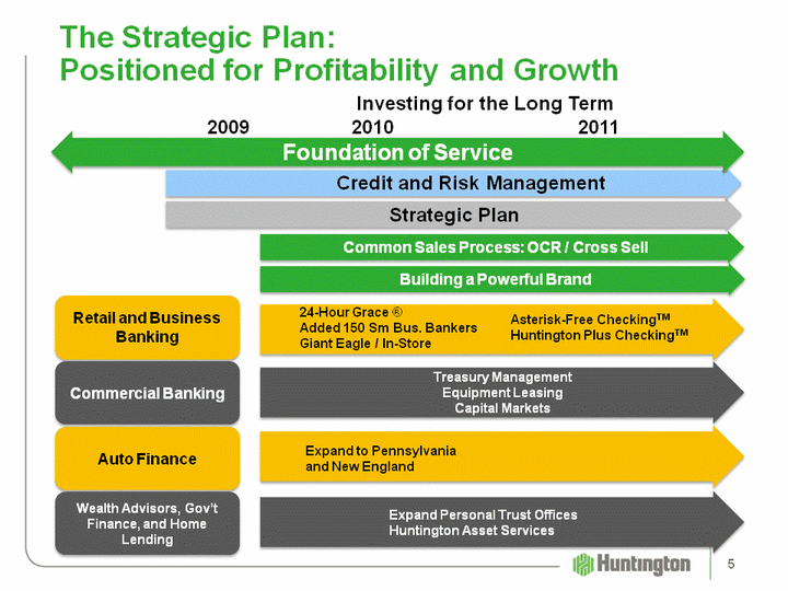 | OptimizeCurrentFranchiseProfitability / pricingCross-sell / share-of- walletLaunch new brandInvest in capabilities and begin hiring Our "Break Away" Strategic Plan LaytheFoundationCapital and liquidityOrganiza- tional changes Build management depthCredit and Risk management Invest in theCoreBuild out sales forces, channels, and productsContinued brand roll- outEnhance investment discipline Selective M&A - as opportunities arise 2009 Focus FutureBuild out sales forces, channels, and productsExpand winning "plays"Drive efficiency and continuous improve- ment Extend and ExpandMonetize investmentsDrive growthDrive efficiency and continuous improve- ment 2010 2011 2012 2013 4 |