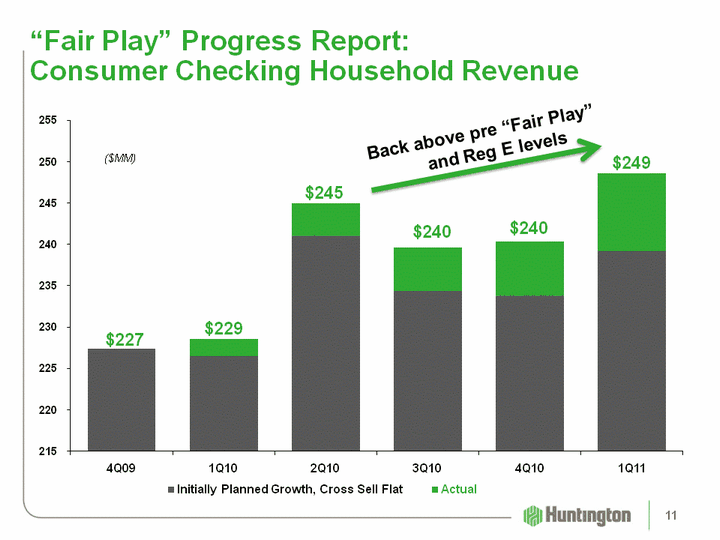 | (CHART) "Fair Play" Progress Report: Consumer Checking Household Revenue $249 $240 $240 $245 $229 $227 Back above pre "Fair Play" and Reg E levels ($MM) 11 |