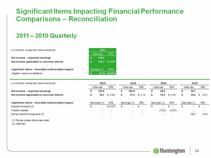 | Significant Items Impacting Financial Performance Comparisons - Reconciliation 2011 - 2010 Quarterly 24 |