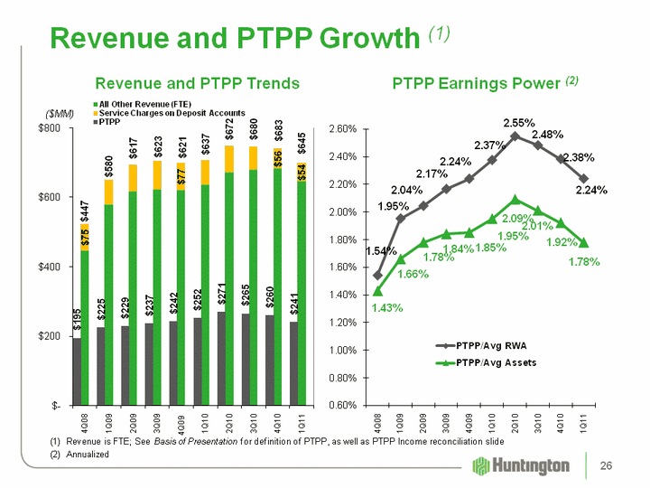 | (CHART) Revenue and PTPP Growth (1) ($MM) (CHART) (1) Revenue is FTE; See Basis of Presentation for definition of PTPP, as well as PTPP Income reconciliation slide(2) Annualized PTPP Earnings Power (2) Revenue and PTPP Trends 26 |