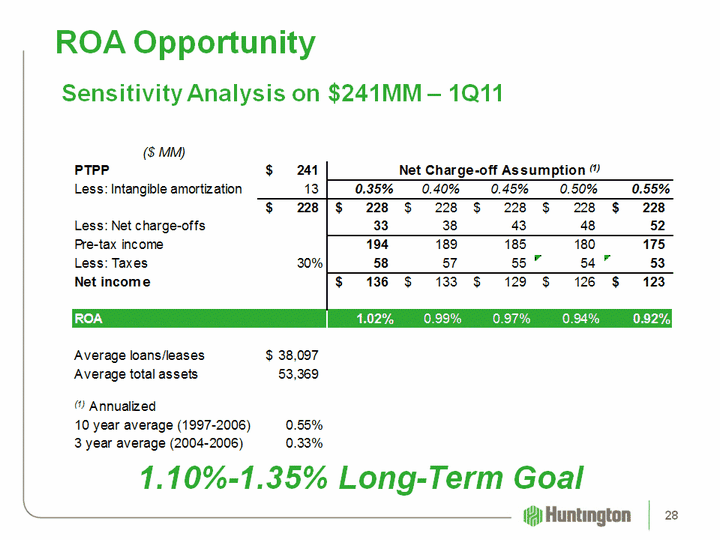 | ROA Opportunity Sensitivity Analysis on $241MM - 1Q11 1.10%-1.35% Long-Term Goal 28 |