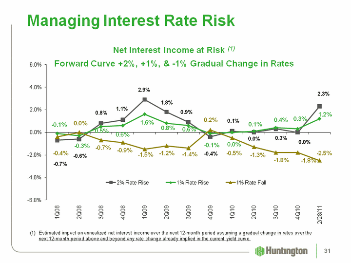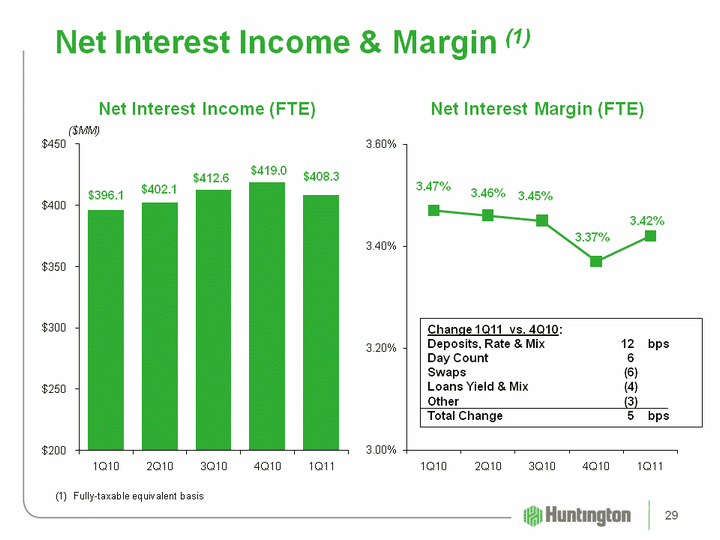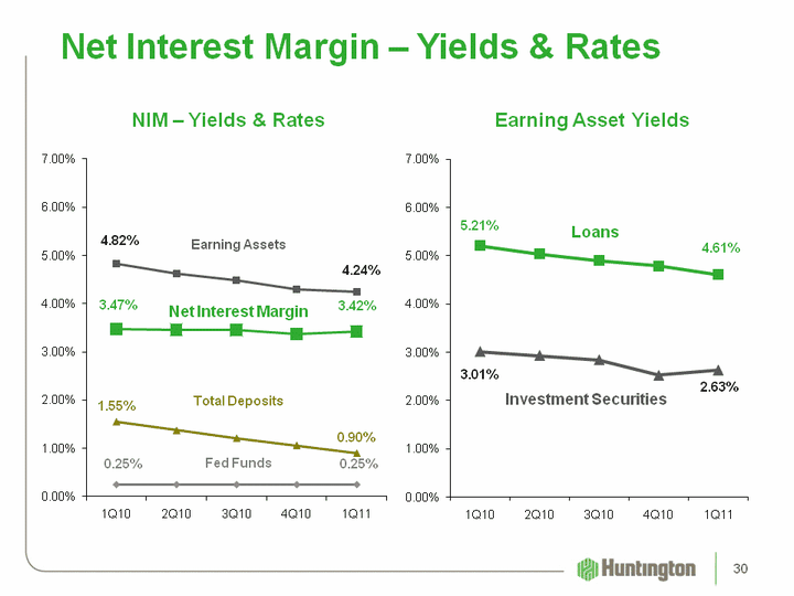 | (CHART) (CHART) Change 1Q11 vs. 4Q10:Deposits, Rate & Mix 12 bpsDay Count 6Swaps (6)Loans Yield & Mix (4) Other (3)Total Change 5 bps Net Interest Income & Margin (1) ($MM) (1) Fully-taxable equivalent basis Net Interest Margin (FTE) Net Interest Income (FTE) 29 |