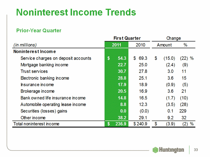 | Noninterest Income Trends Prior-Year Quarter 33 |
