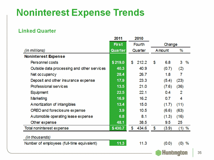 | Noninterest Expense Trends Linked Quarter 35 |