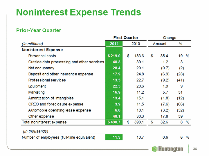 | Noninterest Expense Trends Prior-Year Quarter 36 |