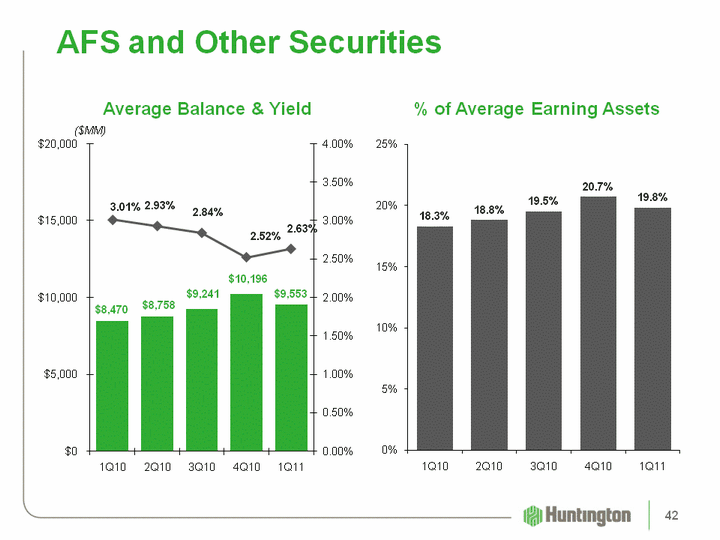 | (CHART) (CHART) AFS and Other Securities ($MM) % of Average Earning Assets Average Balance & Yield 42 |