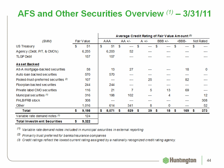 | AFS and Other Securities Overview (1) - 3/31/11 44 |