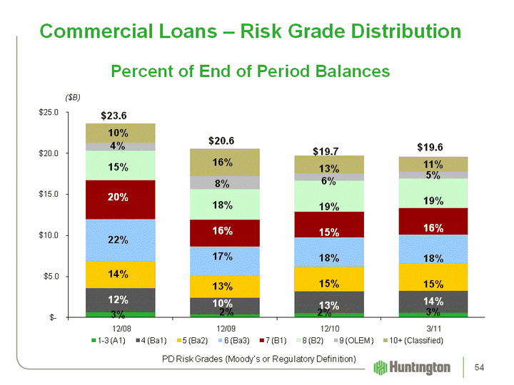 | (CHART) Commercial Loans - Risk Grade Distribution PD Risk Grades (Moody's or Regulatory Definition) Percent of End of Period Balances ($B) $23.6 $20.6 10% 16% 4% 8% 15% 18% 16% 20% 17% 22% 13% 14% 10% 12% 2% 3% 13% 6% 19% 15% 18% 15% 13% 2% $19.7 15% 11% 11% 5% 19% 16% 18% 15% 14% 3% $19.6 54 |