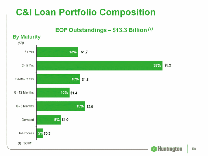 | (CHART) C&I Loan Portfolio Composition ($B) EOP Outstandings - $13.3 Billion (1) (1) 3/31/11 By Maturity $1.7 $5.2 $1.8 $1.4 $2.0 $1.0 $0.3 58 |