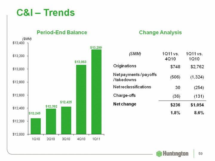 | (CHART) C&I - Trends ($MM) Change Analysis Period-End Balance ($MM) 1Q11 vs. 4Q10 1Q11 vs. 1Q10 Originations $748 $2,762 Net payments / payoffs / takedowns (506) (1,324) Net reclassifications 30 (254) Charge-offs (36) (131) Net change $236 $1,054 1.8% 8.6% 59 |