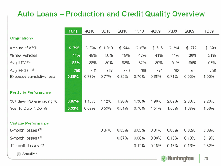 | Auto Loans - Production and Credit Quality Overview Auto Loans - Production and Credit Quality Overview (1) Annualized 78 |