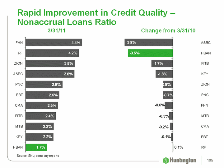 | Rapid Improvement in Credit Quality - Nonaccrual Loans Ratio 3/31/11 Change from 3/31/10 (CHART) Source: SNL; company reports (CHART) 105 |
