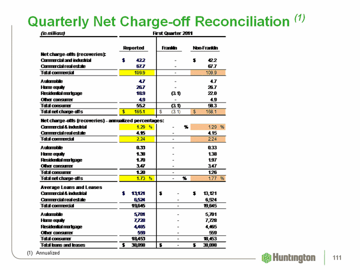 | Quarterly Net Charge-off Reconciliation (1) (1) Annualized 111 |