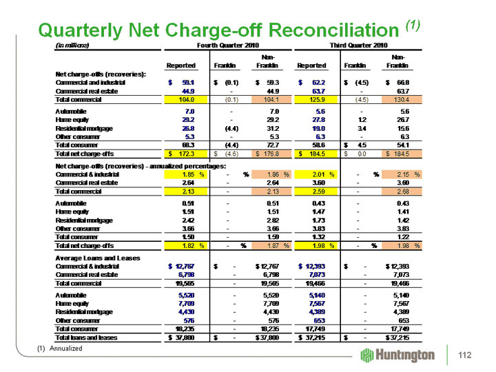 | Quarterly Net Charge-off Reconciliation (1) (1) Annualized 112 |
