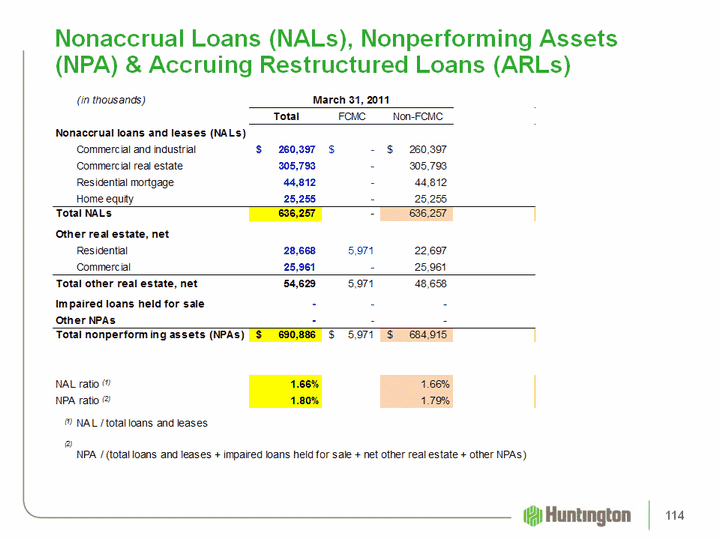 | Nonaccrual Loans (NALs), Nonperforming Assets (NPA) & Accruing Restructured Loans (ARLs) 114 |